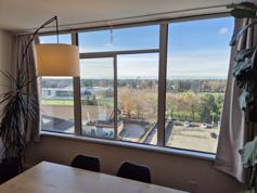 This 11th-floor, west-facing unit offers a bright living room with a view, a spacious bedroom, and a full bathroom. The nicely updated kitchen includes a full-size fridge, stove, and microwave. There is a solarium, which can be used as an office or hobby room.