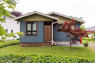 Just off the living room is the home's modern kitchen featuring high end stainless appliances, stone counters, tiled backsplash and plenty of natural light from the large window. Just off the living room you will also find the home's guest bed which currently doubles as an office/den. The room has a custom wood sliding door and gorgeous hardwood floors making it feel spacious and warm. There is a full guest bath with tiled floor, tub, tile surround and pedestal vanity. The true gem of this home is the primary en-suite bedroom located at the back of the home for maximum privacy. The bedroom features hardwood floors and a large slider leading to the home's backyard but also providing a good deal of natural light for the space.