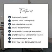 Brand New Townhome for RENT - Available for Move-In NOW!! Townhome Amenities: Brand New Construction & Move-In-Ready! 3-Bedroom, 2.5-Bathroom Luxury Townhomes. 1,601 sqft of Finished Living Space Attached 2-Car Garage Main Level Living Capabilities Stainless-Steel Energy-Efficient Kitchen Appliances White Quartz Countertops Pantry Storage Smart Home Technology Features (Video Doorbell, Programmable Thermostat & Smart Light Switches/Outlets) Primary Suite w/Walk-in Closet & Built-in Shelving Washer & Dryer Included (Upper Level Finished Laundry Room) Outdoor Patio Space Central Air Conditioning & Heating High-Speed Internet Access & Cable Ready. Community Amenities: Includes 24-hour emergency maintenance, professional on-site management, ADT Security system, and beautifully landscaped grounds with lawn care & snow removal. Residents enjoy attached garages with private driveway parking, a pet-friendly, smoke-free environment, and everyday perks like curbside trash and recycling pickup plus an easy online resident portal. On-site mgmt team also provides planned social activities for residents to enjoy & offers FLEXIBLE LEASE TERMS. *Advertised monthly rent rate is inclusive of current 2 month's rent discount offered to new tenants ONLY. Additional Pet Fees/Deposit May Apply. **Contact leasing agent for full/current leasing terms & promotional details! Lease Options & Tenant Discounts Subject to Change at Any Time.**