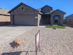 This 3-bedroom, 2-bath, 2-car garage home features a full brick exterior with a covered front porch and double columns. Luxury vinyl plank flooring runs through the common areas with an open-concept kitchen, living, and dining layout. The kitchen includes granite or quartz countertops, a large island with bar seating, stainless steel appliances, and an enclosed pantry. The isolated primary suite offers a walk-in closet, and the home includes both front and back covered patios with upgraded plumbing and lighting fixtures. Grass has been planted in the backyard. Pets considered on a case-by-case bases.