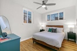 This apartment features a comfy queen bed, a full bed, linens, and a stocked kitchen. It also includes a Smart TV, so you can use your own streaming service. Free communal laundry is available in the basement. Window AC units and ceiling fans are in every room. Radiators provide comfortable heat from a steam boiler system.