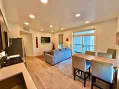 This corner unit offers spacious, open-concept living areas with soaring ceilings, designer furnishings, and large windows that flood the space with natural light and offer captivating views of the cityscape. Enjoy a great night's rest when you sink into one of the premium king and queen-size memory gel beds dressed in high-thread-count linens. There are two full bathrooms complete with full-sized shower/tub combos along with complimentary toiletries and plush towels. A private balcony provides a secluded outdoor oasis to enjoy a quiet reprieve above the bustling streets. The impressive list of amenities in this luxury building includes a large yoga studio, a commercial-quality gym that includes plenty of free-weights and cardio machines, Precor Chrono bikes in the spin studio with complimentary Spivi virtual trainer, an indoor bike storage room, two luxury dry-saunas, a speakeasy lounge that is located behind a hidden door, hammocks and floating beds that are located in the outdoor Zen garden, a complimentary club room that is located in the speakeasy, and a rooftop observatory that looks out over the city skyline and has breathtaking views of the Rocky Mountains.