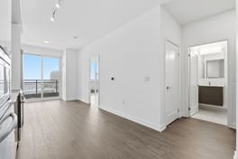 Enjoy A Functional 1-Bedroom + Den Layout At Joy Station Condos With Modern, Designer Finishes. The Primary Bedroom Features A Private Ensuite Bathroom And A Spacious Walk-In Closet, Providing A Secluded Retreat, While The Versatile Den Serves As An Ideal Home Office Or Secondary Guest Space Conveniently Located Across From A Full Second Bathroom. The Open-Concept Living And Kitchen Area Flows Seamlessly Onto A Spacious Balcony, Creating An Airy Atmosphere Perfect For Entertaining. Complete With In-Suite Laundry And A Distinct Foyer Entrance, This Home Combines Functional Luxury With The Premium Finishes. Great Walkability From This Location: Mount Joy GO Station, Grocery Stores & Multiple Retail Plazas All Steps Away. Building Amenities Include Rooftop Terrace With BBQ Stations, Gym, Party/Dining Room, 24-Hour Concierge, Business Centre With WIFI And Games Room. Rental Comes With One-Year Free Internet!