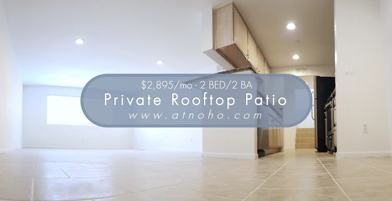 A place to call A TRUE HOME. Truly a one of kind jewel in the NoHo Arts District. Comes with your own PRIVATE ROOFTOP PATIO. Welcome home to Academy Terrace (www.atnoho.com). We are showing a very large, fashionable two-story split-level unit with 2 bedrooms, 2 full baths in the heart of the NoHo Arts District available now. This large unit has an open floor plan with a spacious walkthru kitchen leading to your dining and living area. Tile floor throughout, wood floor bedrooms. Gorgeous granite counters in both kitchen and bath. Very rare to find large, PRIVATE rooftop patio (extra 225sqf) perfect for a BBQ, sitting area, and plants--a great space to relax with a book or kickback with friends. Sky-lit staircase adds more natural light. Walk-in closets and over-sized sliding mirror closets with built-in shelves. Bedrooms are split between two stories which means our split-level, townhome design is great for roommates or a home-office lifestyle by providing privacy and harmony when sharing life. Modern smooth ceilings with beautiful LED recessed lighting throughout for a variety of room lighting atmosphere options with energy efficiency. Lots of cabinet & storage space, extra hall closet. Comes with stove, oven, microwave, dishwasher, garbage disposal. Stainless steel appliances. Cable-ready. Controlled access. Intercom system. Central AC/Heat. Lots of natural light. 1 year lease. Rent: $2,895/mo. Size: 1,204 sqft. Deposit: $1,250. PARKING INCLUDED-2 assigned garage parking spaces included. PET-FRIENDLY - Up to 2 pets allowed with a combined weight of 40 lbs and under at maturity. Non-smoking. On-site washers/dryers (mobile app and coin operated). UTILITIES INCLUDED-We cover 100% water, gas for hot water, trash, and gardener. NO HIDDEN FEES. Shown by appointment only. Call (818) 832-4551 for more information or requests. TTY-711. Equal Housing Opportunity. Prices are subject to change without notice. www atnoho com