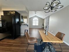 This past year the home has had extensive upgrade including foundation repair, new electrical and plumbing updates, bathroom remodel, new exterior/interior doors, fireplace insert/stone upgrade, new flooring, trim, garage door openers, lighting, cabinet updates, new countertop/back splash and so much more! Who could be tired of the word NEW in a home?! The home is spacious, inside the oversized primary bedroom hosts a large walk in closet and private full bathroom with new updates & posh double door entry. 2 bedrooms across the hall with great space and light. The living/dining has tall, vaulted ceilings, but the focal point is the newly upgraded electric fireplace with stunning stone accent. An open area floor plan with wide stairwell leading to the entry and basement. Our basement hosts a large entertainment space or additional potential bedroom, and deep garage for hobbies/work benches, extra storage or working on the bike. Additional storage unit onsite as well. Fenced in yard for full function. A home where your views are 'Country' with the incredible expansive view to pastures out your backyard and kitchen windows.