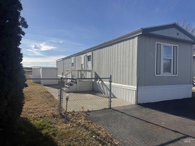 Well kept manufactured home with quiet location in Skylane Mfg Home Community. Split bedroom design and two full bathrooms. Metal roof is new. Park amenities include a clubhouse, playground and common area for sports and special events. No real property included. Water, sewer and garbage are included in space rent of $545 a month. Side deck with a fenced in area. There are 2 small storage sheds for extra items (one of the sheds belongs to the park). All buyers must be pre-approved through Skylane park.