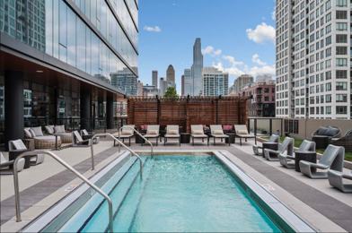 Welcome to 808 N Cleveland - Contemporary Living Redefined. This expansive 2-bedroom 2-bath residence offers the perfect blend of style, space, and functionality in one of Chicago's most dynamic neighborhoods. Enjoy floor-to-ceiling windows, an open-concept living area, and premium finishes throughout. The modern kitchen features quartz countertops, stainless steel appliances, and sleek cabinetry, while in-unit laundry, ample storage, and wood-style flooring provide comfort and convenience. The versatile den is ideal for a home office, creative space, or guest area - designed to adapt to your lifestyle. Residents have access to an exceptional suite of amenities, including a state-of-the-art fitness center, outdoor pool with sundeck, resident lounge and game rooms, and 24-hour door staff. The community is pet-friendly, with a dog run and pet spa, and offers on-site garage parking with EV charging. Perfectly situated in Chicago's Near North neighborhood, 808 N Cleveland is steps from the Chicago Riverwalk, Old Town, Fulton Market, and top shopping, dining, and entertainment options. Additional floor plans and bedroom layouts are available. Photos may be of a similar unit and not the actual apartment available.