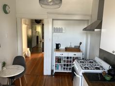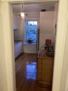 This Top (3rd) floor view, fully refinished hardwood floors, doors and trim back to its original beauty. All new dual pane thermal windows and brand new kitchen and fridge with gas stove (Gas and hot water included).