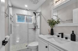 The Kitchen Showcases Elegant Quartz Countertops, Sleek Modern Cabinetry, and Stainless Steel Appliances, providing both Beauty and Functionality for Culinary Enthusiasts. Each Bathroom is thoughtfully Designed with Contemporary tilework and High-end Fixtures, creating a spa-like atmosphere for Daily Routines. Step outside to enjoy the newly Constructed Gazebo, Perfect for Entertaining or relaxing in the Landscaped backyard.
