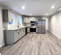 Brand new throughout! Newly updated first-floor unit in the heart of North Babylon featuring an updated eat-in kitchen with brand-new gray cabinets, quartz countertops, and full-size appliances. New flooring and fresh paint throughout. Spacious living room with recessed lighting and large windows. King-size primary bedroom with double closets plus two additional bedrooms. Full bath with tub/shower combo. Private entrance, driveway parking, and interior access to basement for laundry and storage. Located in a legal three-family / rare triplex. No pets. No smoking. You do not want to miss this one! Come see for yourself :)
