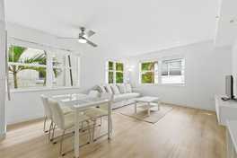 COMPLETELY RENOVATED, STUNNING SUPER BRIGHT 2nd FLOOR UNIT. This sunny and quiet corner 1 bedroom / 1 bathroom boasts an abundance of natural light! Beautiful new laminated floors throughout the entire apartment. Ultra modern and very spacious open kitchen / dining room features stainless steel appliances, quartz countertop, 2 sinks and a window overlooking a bright palm tree view. The tv / lounge area has a large couch and 3 windows. The large bedroom also has a huge window overlooking palm trees. The bathroom was designed with a frameless transparent shower door. The closet is very spacious and there is an in-unit washer & dryer. LOCATION! Ideally located between Lincoln Road & Espanola Way, near restaurants, shopping, cafes and only two blocks from the ocean! NO PETS & NO SMOKERS