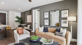Live in a modern 1-bed, 1-bath home with quartz countertops, stainless steel appliances, designer cabinetry, spacious closets, in-unit washer/dryer, and private patios or balconies in select units. Thoughtfully designed floor plans blend comfort and style — perfect for seamless city living.