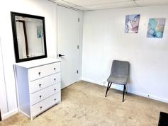 Rent ONE adorable FURNISHED BEDROOM in a fully furnished house with a DINING ROOM and only a short walk from PURDUE Northwest campus. A QUEEN sized memory foam bed, dresser, nightstand, living and dining room furniture, living room TV to stream your accounts, and chair all included in rent. Your bedroom rental also comes with its own PRIVATE entrance and GARAGE RENTAL. Only a short drive to the expressways. There is a required additional monthly charge for internet and power. (*Additional fees may be added for excessive utilities usage or internet data.) Includes DISHWASHER, and microwave, WASHER and DRYER. Privacy fenced yard.