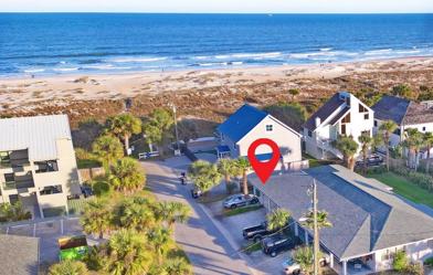Exceptional location! Just 50 feet from the beach walkover to the beautiful white sand beaches of St. Augustine, this 800 SF, 2 bedroom, 1 bath residence is ideally located in the heart of St. Augustine Beach. This first-floor unit in a 1-story building features tile floors, granite countertops, central heat and air, on-site laundry, and a large private patio with outdoor deck, perfect for coastal living. Walk to the beach, restaurants, and local attractions. First, last, and security deposit due at signing.
