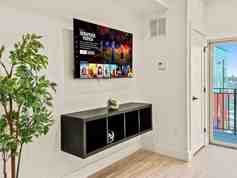 Discover the perfect blend of modern comfort and city vibrance in this charming apartment. Whether you're visiting for a romantic escape, a business trip, or a solo adventure, this cozy space is designed to meet all your needs and make your stay unforgettable. Unwind in the serene primary bedroom featuring a plush queen-sized bed dressed in soft, luxurious linens. Ample storage ensures a clutter-free stay, whether you're here for a few nights or an extended visit. The bright and airy living room is the perfect place to relax after a day of exploring Philadelphia, with comfortable seating and stylish decor. A 50-inch smart TV is ready for movie nights or your favorite shows. Cook like you're at home in the fully equipped kitchen, complete with modern appliances and all the cookware and utensils you need. The adjacent dining area is perfect for enjoying a meal—whether it's home-cooked or your favorite local takeout. Refresh in the sleek, modern bathroom featuring a walk-in shower, plush towels, and complimentary toiletries.