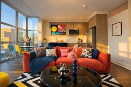 Feel at home in this bold and playful apartment designed to make you smile the second you walk in.