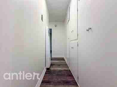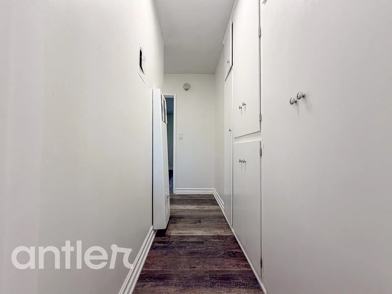 The fully renovated bathroom is a retreat in itself, featuring floor-to-ceiling upgrades and modern fixtures. Ample closet space throughout the apartment ensures all your storage needs are met.