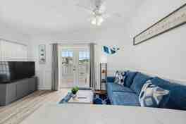 This apartment has all the essentials for a stress-free getaway, including fresh linens, bath and hand towels, beach towels, starter soaps, and complimentary coffee. The fully equipped kitchen is ideal for light meals, snacks, and your morning coffee and features an oven, stovetop, microwave, and refrigerator. A Smart TV and ceiling fan are included in both the living area and bedroom.