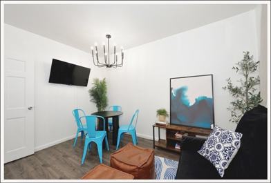 This centrally located home is fully equipped with all the basics and necessities for your convenience. It includes a dining table for 6 and a flat-screen TV. The kitchen features a washer, dryer, and dishwasher.