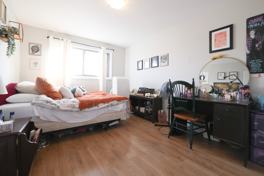 Recently installed, high-quality laminate flooring looks great and is easy to maintain. Renovated, open concept kitchen with breakfast bar! Bedroom is easily large enough for a queen bed and a couple of dressers (bed in photos is a queen).