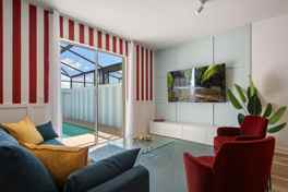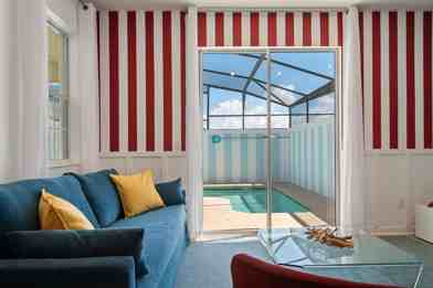 This family-ready home includes a high chair, stroller, Pack ’n Play, and is pet-friendly. Enjoy access to Storey Lake’s water park, lazy river, tiki bar, and mini golf. The dining area offers seating for 8 plus 4 bar stools, along with a 65" Smart TV. The fully equipped kitchen features modern appliances, cookware, utensils, a coffee maker, and a toaster. The bedrooms offer comfort and style, with a king-size bed in two bedrooms and full-over-full bunk beds in the other two. Enjoy the private screened pool with an outdoor TV and dining area.