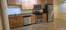 This desirable second-floor 1-bedroom, 1-bath unit is surrounded by lush landscaping and features a modern kitchen equipped with a full suite of stainless-steel appliances, including a refrigerator with icemaker, electric stove, built-in microwave, and full-sized dishwasher. Solid wood cabinets and granite countertops add both style and functionality.