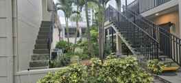 This desirable second-floor 1-bedroom, 1-bath unit is surrounded by lush landscaping and features a modern kitchen equipped with a full suite of stainless-steel appliances, including a refrigerator with icemaker, electric stove, built-in microwave, and full-sized dishwasher. Solid wood cabinets and granite countertops add both style and functionality.