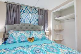 This home offers access to the entire house. It includes a front porch with outdoor seating, a living and dining area, a dedicated study/work area, a fully equipped main kitchen with a 4-burner stove, refrigerator, and microwave, a laundry area, and a fenced backyard. Two of the bedrooms are located in the back of the house, each with its own private bathroom and kitchen with a 2-burner stove.