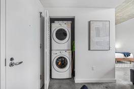 Stacked washer and dryer in a dedicated closet, accessible from the hallway.