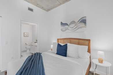 Direct access to the bathroom and a sliding-door closet.
