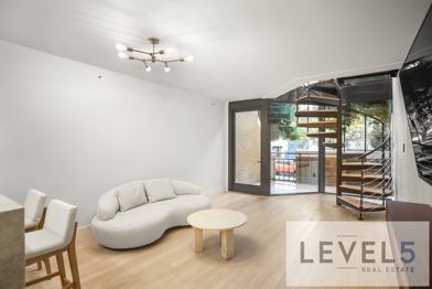 Cosmopolitan condo for lease. Spectacularly rebuilt from the studs, this sleek one bedroom loft condo is a rarity on the North side of SF. Soaring ceilings, open kitchen with breakfast bar adjoins the open floor living room with all new finishes including the wall of windows that open onto a private patio. Wood floors throughout. A large walk-in closet is at the entry opposite the kitchen for extra storage. Ascend the spiral staircase to a spacious retreat. The bedroom is amply sized to offer a sitting area plus has a desk area as well. A large walk-in closet, laundry and a luxurious bathroom complete this level. Offered semi-furnished, just unpack your bags and enjoy life in the North Waterfront. 101 Lombard is a luxury complex nestled at the base of Telegraph Hill. Amenities include: Doorperson, pool, security, onsite property manager, community room with kitchen, library, common view roof decks.