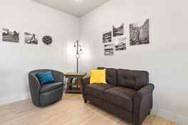 This stunning property features 2 king-size bedrooms, one with an en-suite featuring a tiled shower and freestanding tub. The spacious bonus room is a massive entertainment space for all ages, featuring games and additional sleeping options with rollaway floor mattresses, accessed through the garage for privacy and convenience. Enjoy farmhouse vibes throughout with charming decor, giant patios surrounding the home ideal for BBQs and lounging, and a fully equipped kitchen with a gas stove, fridge, and ample counter space. A washer and dryer are available for your convenience during longer stays.