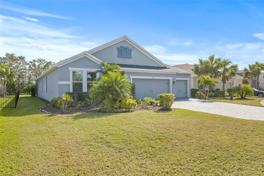 AVAILABLE APRIL 1ST 2026. This immaculate 4-bedroom home with a den comes freshly painted and is packed with great features and upgrades. As you approach, the paver driveway and sought-after 3-car garage immediately stand out. Inside, all bedrooms and the den showcase engineered wood flooring, while the rest of the home is finished with tile—perfect for comfortable Florida living. The open-concept great room welcomes you with stunning tray ceilings and crown molding, making it ideal for entertaining. The chef’s kitchen is equipped with double ovens, a spacious walk-in pantry, a generous counter-height bar, stainless steel appliances, a stylish backsplash, and cabinetry accented with crown molding. The great room is pre-wired for surround sound, complete with ceiling speakers for an immersive audio experience. The thoughtful layout includes Jack-and-Jill bedrooms at the front of the home, a den conveniently located off the great room, and a fourth bedroom privately positioned on the opposite side. The expansive master suite features a luxurious bathroom with dual vanities, a Roman shower, and a massive walk-in closet. Step outside to the oversized, screened-in lanai that stretches the length of the home, offering a tranquil setting to relax and enjoy the surrounding wildlife. The community amenities are equally impressive, featuring a resort-style pool with a slide, tot water fountains, a playground, a basketball court, and a clubhouse. Plus, a top-rated elementary school is just minutes away, and the location offers easy access to I-75 and the Ft. Hamer Bridge.