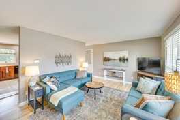 This thoughtfully appointed house offers two smart TVs with streaming, a private partially fenced backyard with a patio, a dedicated office with books, and a dining table. The fully equipped kitchen includes a stove/oven, refrigerator, dishwasher, microwave, blender, toaster, drip coffee maker, cooking basics, spices, and dishware and flatware. You'll also find trash bags, paper towels, a washer and dryer in the basement, central air conditioning and heating, linens and towels, a hair dryer, and an iron and board.
