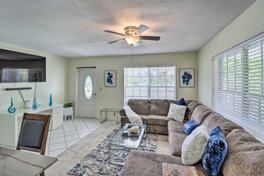This vacation rental has everything you may need for a comfortable stay, including an updated, fully equipped kitchen with stainless steel appliances, an electric range, a microwave, a dishwasher, a fridge with ice maker, a Keurig coffee maker, dishware and flatware, glassware, and spices. Enjoy the convenience of free Wi-Fi, a smart TV, an open-concept living area, a breakfast bar, ceiling fans, towels, linens, and complimentary toiletries.