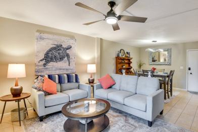 Your next sunny Florida retreat awaits with a stay at this 2-bedroom, 1.5-bath condo in New Smyrna Beach. Situated less than a mile from the beach, this cozy condo offers a full kitchen and a screened-in patio for sipping morning coffee, providing you with the rejuvenating getaway you’ve been hoping for. Enjoy access to a community pool and explore nearby attractions like the 27th Avenue Beachfront Park, Canal Street, and the Canaveral National Seashore.