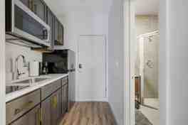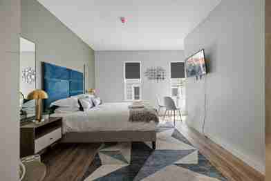 This cozy and inviting studio is designed with you in mind. As you step inside, you'll immediately notice the well-thought-out living and sleeping space, adorned with stylish and comfortable furnishings. The studio has a large, comfortable bed, plush linens, and a cozy workspace. The kitchenette includes a coffee maker, microwave, and refrigerator. The bathroom is stocked with essentials such as shampoo, body soap, conditioner, shower gel, hairdryer, and bed linens. Enjoy an efficient in-room heating and air conditioning system.