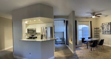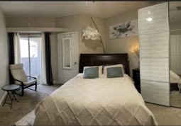 Beautiful fully furnished 2-bedroom condo with attached 2-car garage located near Eastern & Windmill, just minutes from the 215 freeway, approximately 12 minutes from Harry Reid International Airport and 15 minutes from the Las Vegas Strip. The primary bedroom features a queen bed, and the second bedroom includes a versatile trundle bed that can convert into two twin beds or a king-size bed. The home is fully equipped with cookware, dishes, Smart TV in the living room, and comfortable outdoor balcony furniture, offering a move-in-ready living experience. Situated in a secure gated community with 24-hour surveillance and a beautiful community pool, this property is ideal for traveling professionals, relocating families, or anyone seeking a comfortable extended stay. Short-term rental (minimum 6 months): $2,050/month (utilities included) plus cleaning fee.