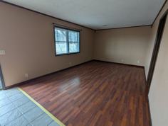 A mud room/additional storage space opens onto a raised wooden deck perfect for entertaining guests or relaxing outdoors.