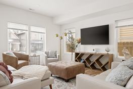 The open living area is bright and welcoming, with comfortable seating and a smart TV for streaming your favorite shows. The fully equipped kitchen makes it easy to prepare meals at home, while the dining area provides space to gather and connect. The kitchen boasts sleek countertops and brand new stainless steel appliances. All bedrooms feature premium bedding, ample storage, and TVs. The loft is also equipped with a smart TV and a sleeper sofa. A washer and dryer are available for convenient longer stays.