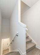 The ground floor has 9-foot ceilings, sleek quartz countertops, stainless steel appliances, opulent vinyl plank flooring, in-suite laundry, and an exclusive terrace. The upper level has 3 generously sized bedrooms.