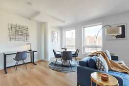 This apartment features an upscale kitchen. Work out in the building's gym or relax in the shared outdoor spaces and roof deck.