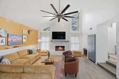 Inside, you’ll find an open-concept living area and a fully stocked kitchen with high-end stainless appliances, a large refrigerator, ample cabinetry, a large island with high seating, and a coffee maker (drip, Keurig, and French press). The living room features a 65” smart TV and a large plush sofa. Enjoy the game room with air hockey, a foosball/ping pong table, and arcade games. Step outside to your private backyard paradise, where the sparkling pool and hot tub invite you to unwind, the fire pit sets the scene for cozy evenings under the stars, the tree house sparks imagination and fun for kids, and the ample yard games ensure hours of outdoor entertainment for everyone. Other amenities include bikes, a trampoline, putt putt, giant connect 4, an outdoor patio/dining area, a BBQ grill, hammocks, an outdoor theater, TVs in each bedroom, and a washer and dryer.