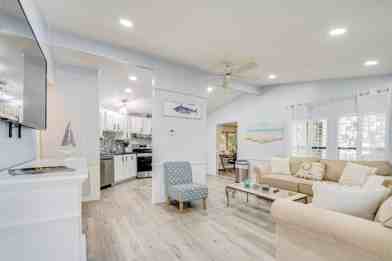 Community amenities, including a tennis court, pickleball, rec centers, pools, dance classes, bingo nights, and unlimited golf, are available for $50 per person, valid for up to 1 month. A pet-friendly stay is available for a $75 fee for dogs only, with a maximum of one dog. Guests can get around on the golf cart, though a waiver may be required prior to use.