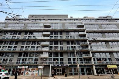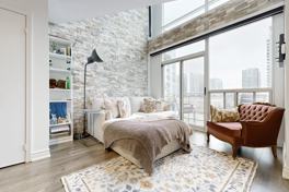 For all of the loft lovers-your search ends here. Discover this truly rare, two-storey penthouse terrace suite at Electra Lofts in the heart of King West. South-facing and sun-drenched, this bright, spacious, and airy residence has been impeccably maintained and showcases striking, design-forward upgrades throughout. Highlights include a dramatic 17-foot custom rock feature wall, sleek quartz countertops, new hardwood staircase with integrated LED lighting, an LG refrigerator with water and ice maker, and stylish updated lighting. Enjoy exceptional outdoor living with two private spaces-a main-floor balcony and an expansive rooftop terrace offering unmatched lake and city skyline views, perfect for entertaining or unwinding above the city. The primary bedroom is a true retreat, featuring hardwood floors, a large walk-in closet with custom built-ins, and pot lighting for a warm, refined ambiance. This suite also includes an oversized parking space and locker, conveniently located across from a quiet, discreet elevator. All of this in an unbeatable location-steps to transit, parks, and the best of Toronto's west end. Walk to Stanley Park, Trinity Bellwoods, the vibrant Ossington Strip, Queen West boutiques and shops, and the renowned restaurants, cafés, and nightlife of King West. Perfect for young professionals seeking the ultimate loft lifestyle-style, space, and city living at its finest.