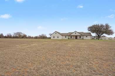 Charming farmhouse-style home on a 5-acre lot offering the perfect blend of comfort and character! This 4-bedroom, 3-bath residence welcomes you with an inviting front porch and spacious, sun-filled rooms featuring wood-look laminate flooring, a wood-burning fireplace, decorative wood beams and elegant decorative lighting throughout. The chef-inspired kitchen boasts white cabinetry, a farmhouse sink, a center island with wainscoting, subway tile backsplash, stainless steel appliances, and a convenient pot filler—ideal for culinary adventures. Retreat to the generous sized ensuite master showcasing adorable barn-style doors and a luxurious bath with double quartz vanities, ample cabinetry and a large custom closet. Additional highlights include a dedicated gym, one storage barn and a serene pond—perfect for outdoor enjoyment. This home combines farmhouse charm with modern amenities, creating a welcoming space for both entertaining and everyday living. *Lawn Care Included!
