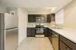 WONDERFUL, low-maintenance 2 bed, 1.5 bath fully furnished condo with ALL BILLS PAID! 1st floor features updated kitchen with stainless appliances, spacious living area with gas fireplace, and half bath. Upstairs offers two bedrooms with nice closets and private baths. Enjoy fenced patio, covered parking, on-site laundry, and walk to large pool with lounge area. Move-in ready!