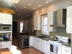 Updated kitchen equipped with dishwasher, gas stove/oven, refrigerator and wine fridge