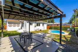 The property’s layout is ideal for everyday living and entertaining: an open kitchen and living area that flows lots of light throughout the home. Covered gazebo and sparkling pool, making relaxing after a long day. The galley kitchen has been updated with modern finishes, and the home features newer fixtures, fresh paint, and no carpeting, ensuring a clean, low-maintenance lifestyle.