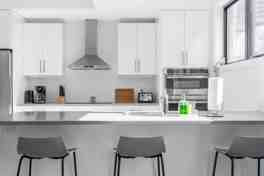 This apartment features a fully stocked kitchen, a living room with a Smart TV, super high-speed Wi-Fi, a walk-in closet, an en-suite, an in-unit washer/drier, and top-of-the-line appliances.